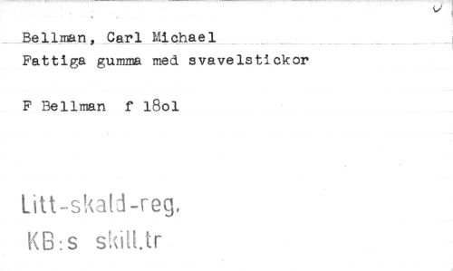 //// Belin4n, Carl Michael //// Fattiga gumma med svavelstickor //// F Bellman f 18o1 //// Litt-skald-reg, //// KB:s skiU.tr. ////