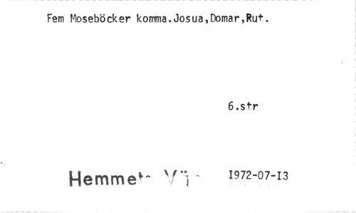 //// Fem Moseböcker komma.Josua,Domar,Rut. //// 6.str //// Hemme 1972-07-13 ////