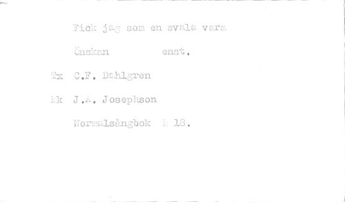 //// -Fick jag som en svala vara riskan enst. //// Tx C.F. Dahlgren //// lic J... Josephson Nornisänp:bok L- 13. ////
