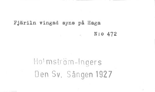 //// Fjäriln vingad syns på Haga //// N:0 472 //// H& msträm-Ingers //// Den Sv. Sången 1927 ////