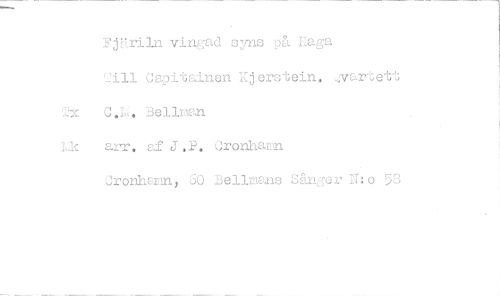 //// Fjäriln vingad syns på Haga //// 2111 Capitainen Kjerstein. .„sartett x 0.1. Bellman //// Lic arr. af J.P. Cronharn //// Orohhaun, 60 Bellmans Sånger N:o 58 ////