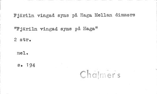 //// Fjäriln vingad syns på Haga Mellan dimmors //// "Pjäriln vingad syns på HaglO 2 str. //// mel. //// s. 194 //// C la!n--) er s ////