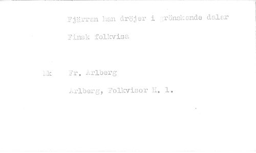 //// Fj-rrm han dröjer i :i:,rönsksnde dalar Finsk folkvisa //// läk Fr. Arlberg //// rlberg, Folkvisor L. 1. ////