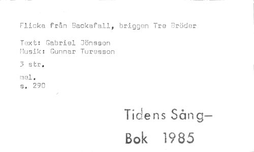 //// Flicka från Backafall, briggen Tre 0r0der //// Text: Gabriel Jönsson Musik: Gunnar Turesson //// 3 str. //// mel. //// s. 290 //// Tidens Sång— //// Bok 1985 ////