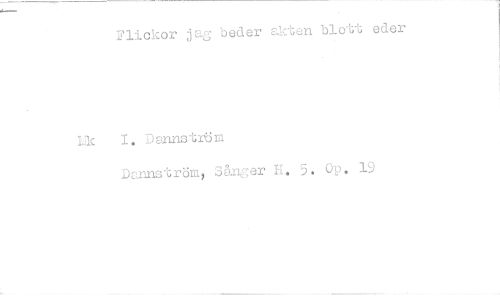 //// Flickor jag beder akten blott eder //// 1åk I. Dannström //// Dannström, Sånger H. 5. Op. 19 ////