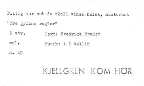 //// Flitig var och du skall vinna hälsa, munterhet "Tre gyllne regler" //// 3 str. Text: Fredrika Bremer //// mel. Musik: A- P Wallin //// s. 49 //// KJELLG LIN 1KOM HÖR ////