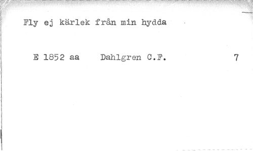 //// Fly ej kärlek från min hydda //// E 1852 aa Dahlgren C.F. 7 ////