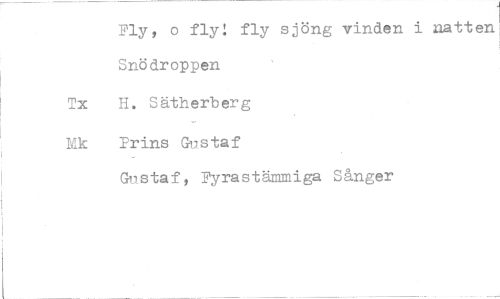 //// Fly, o fly! fly sjöng vinden i natten 1 Snödroppen //// Tx H. Sätherberg //// Mk Prins Gustaf //// Gustaf, Fyrastämmiga Sånger ////