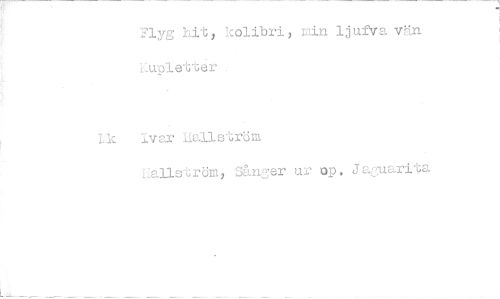 //// Flyg hit, kolibri, min ljufva vän upletter //// Lk 'vor liallström //// Ealls'cröm, Sånger ur op. Jaguarita ////
