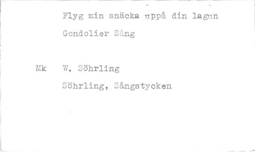 //// Flyg min snäcka uppå din lagun Gondolier Sång //// Mk W. Söhrling //// Söhrling, Sångstycken ////