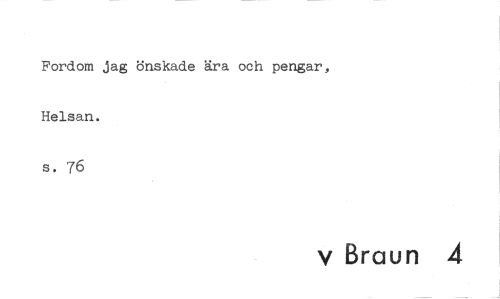 //// Fordom jag önskade ära och pengar, Helsan. //// s. 76 //// v Braun 4 ////