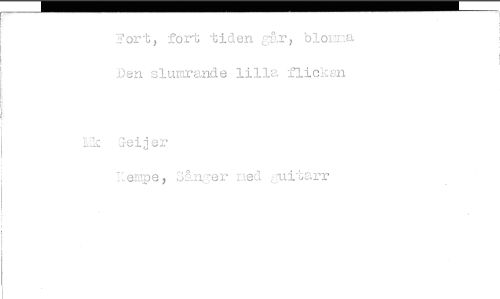 //// Fort, fort tiden går> blorna Den slumrande lilla :nicken //// Lic Geijer //// 'Kempe, Sujer ned guitarr ////