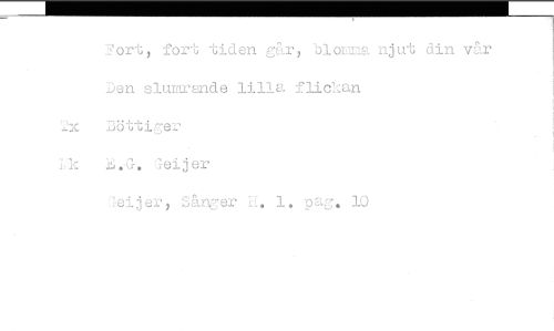 //// Fort, fort tiden går, blomma njut din vår Den slumrande lilla flickan //// Tx Döttiger //// Geijer //// Geijer, Sånger H. 1. pag. 10 ////