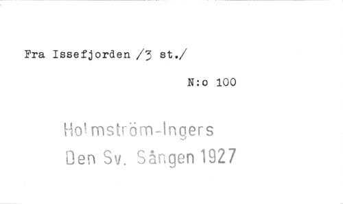 //// Fra Issefjorden /3 st. //// /N:o 100 //// Ho!.mström-Ingers //// Ben Sv. Sången 1927 ////