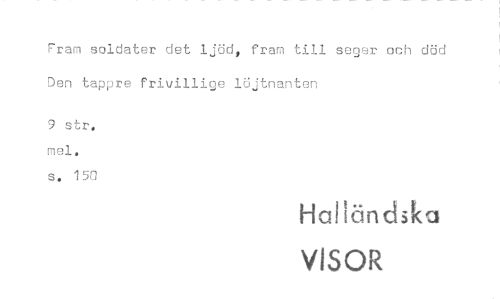 //// Fram soldater det ljöd, fram till seger och död Den tappre frivillige löjtnanten //// 9 str. mel. //// s. 150 //// Halländska //// VISOR ////
