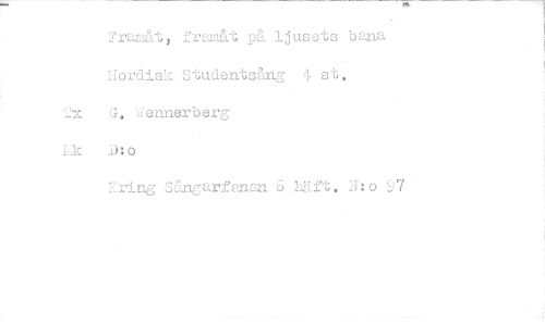 //// 1 //// 2ramåt, framåt på ljusets bana //// lordisk Studentsång 4 st. //// x G. .iennerberg //// Lic D:o //// nrin; Sånjarfe= 5 Mft. J:o ////