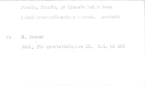 //// 2reråt, frilåt, på ljusets ILeis. bena k.L.elmö arbetarförenings lArsch. ..vartett. //// Lk C. Becker //// Bibi. för qvartettsäA7are II. 11.1, nr 105 ////