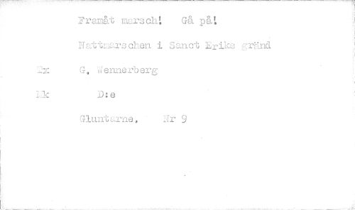 //// Framåt marsch! Gå påt Nattmarscben i Smet Eriks gränd G. 'ennerberg //// 1,3c D:e //// Gluntarne. • Ur 9 ////