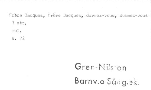 //// Frbre Jacques, frbre Jacques, dormez-vous, dormez-vous 1 str. //// mal. //// s. 72 //// Gren-k-ii!r:-on //// Barnv.o Sa 19.3k. ////