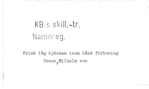 //// KB:s //// N mnreg. //// Frisk låg hjärnan inom hård förboning Braun Wilhelm von ////