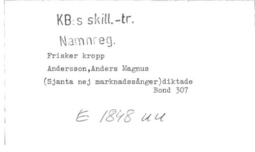 //// KB:s skilt.-tr. //// Mx-niveg. //// Frisker kropp Andersson,Anders Magnus //// (Sjanta nej marknadssånger)diktade //// Bond 307 //// /,Eff ute ////