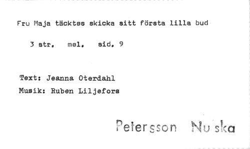 //// Fru Maja täcktes skicka sitt första lilla bud 3 str mal. sid. 9 //// Text: Jeanna Oterdahl Musik: Ruben Liljefors //// elersson ////