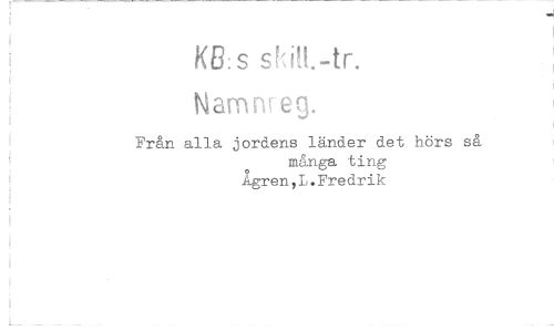 //// KB: s sh[1.-tr. //// Namnreg. //// Från alla jordens länder det hörs så //// många ting //// Igren,L.Fredrik ////