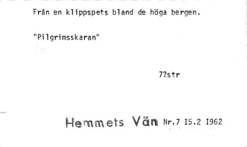 //// Från en klippspets bland de höga bergen. "Pilgrimsskaran" //// 7?str //// Hemmets Vät Nr.7 15.2 1962 ////