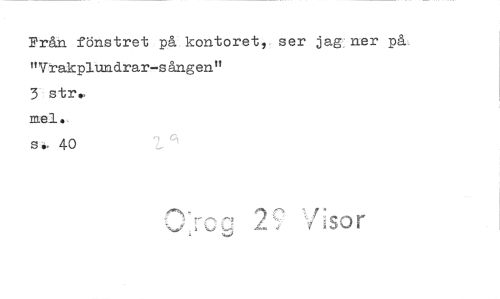 //// Från fönstret på kontoret, ser jag ner på "Vrakplundrar-sången" //// 3 str.s //// mel. //// sw, 40 //// sor ////