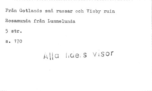 //// Från Gotlands små russar och Visby ruin Rosamunda från Lummelunda //// 5 str. //// s. 170 //// (... " sor ////