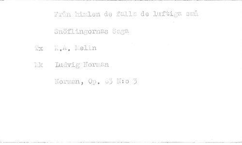 //// FrIn himlen de fulic. de luftiga små Snöflingornas Saga //// Tx K.A. Lelin //// Ldc Ludvig Norman //// Norman, Op. 33 N:o 3 ////