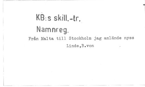 //// KB:s skal-tr. //// Namnreg. //// Från Malta till Stockholm jag anlände nyss //// Linde,B.von ////