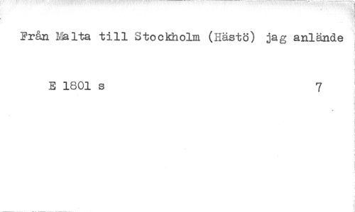 //// Från Malta till Stockholm (Hästö) jag anlände //// E 1801 s 7 ////
