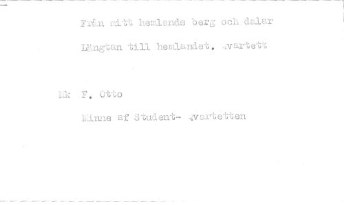 //// Frgll mitt hemlands berg och dalar Längtan till hemlandet. ,xartett //// -hk F. Otto //// Linne af Student- ...vartetten ////