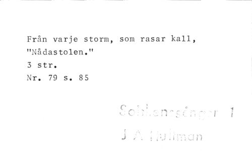 //// Från varje storm, som rasar kall, "Nådastolen." //// 3 str. //// Nr. 79 s. 85 //// .`) ,;" ; i :J :C1 ////