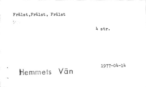 //// Frälst ,Frälst , Frälst //// 4 str. //// Hemmets Vän 1977-04-14 ////