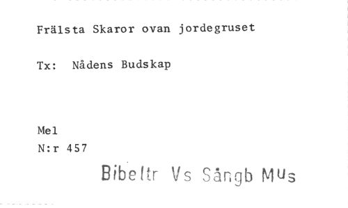 //// Frälsta Skaror ovan jordegruset Tx: Nådens Budskap //// Mel //// N:r 457 //// Bibeltr Vs Sångb Mus ////