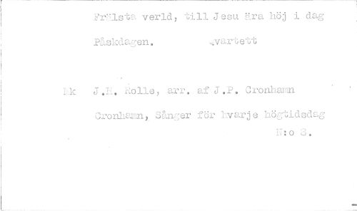 //// verld, till Jesu Kro, höj i dag Påskdayen. vartett //// Lk J.L. rol1e, arr. af J.P. Cronharan //// Cronhainny Sånger för hvarje högtidsdag //// IT:o 3. ////