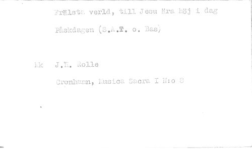 //// 2rälstu. verid, till Jesu ära höj i dag PLskdagen (s.A.r. 0. Bas) //// ik J.L. //// Cronhaan, 1,uslea acra 1 H:o ////
