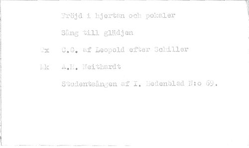 //// 2r5jd i hjertan och pokaler //// Sång till glädjen //// 2x C.G. af Leopold efter Schiller Yeithardt //// Studentsången af I. 1-ledenblad N:0 69. ////