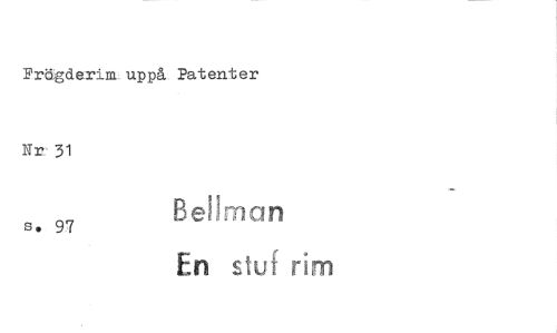 //// Frägderim uppå Patenter //// Nr" 31 //// Be! man //// s• 97 //// En stuf rim ////