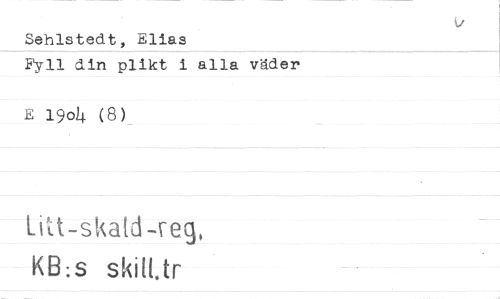 //// Sehlstedt, Elias //// Fyll din plikt i alla väder //// E 1904 (8) //// titt-skald -teg, //// KB:s ////