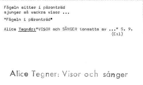 //// Fågeln sitter i päronträd sjunger så vackra visor ... //// "Fågeln i päronträd* //// Alice Teonår:"VI$OR och SÅNGER tonsatta av ..." S. 9• //// (E:1) //// Alice Tegner: Visor och sånger ////