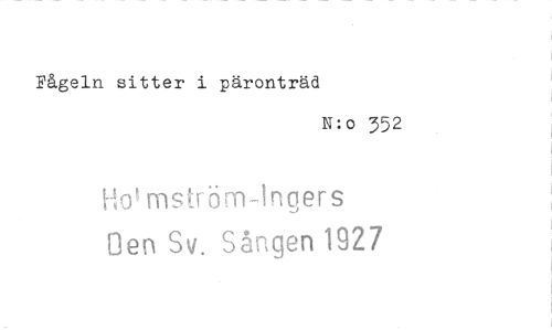 //// Fågeln sitter i päronträd //// N:o 352 //// Ho mström-ingers //// Ben Sv. Sången 1927 ////