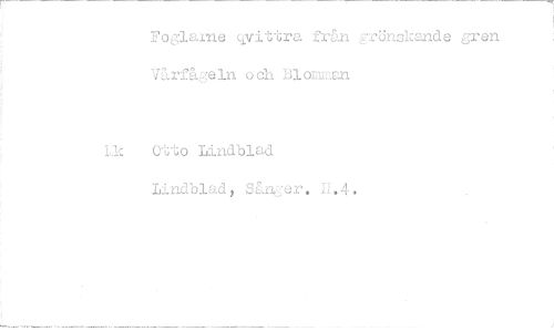 //// Foglarne vittra frön grönskande gren Vårfågeln och Llorunan //// Lik Otto Lindblad Lindblad, Sånk-er. ////