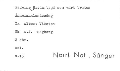 //// Pädernejrvda bygd som vart bruten Ångermanlandssång //// Tx Albert Viksten Mk A.J. Högberg 2 str. //// mel. //// s.15 Norr!. Flat . Sånger ////
