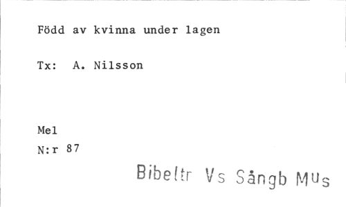 //// Född av kvinna under lagen Tx: A. Nilsson //// Mel //// N:r 87 //// Bibettr Vs Sångb Mus ////