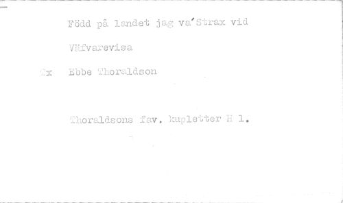 //// Född på landet jag va'Strax vid Väfvarevisa //// ibbe Thoraldson //// '.:horaldsons .av. kupletter h 1. ////