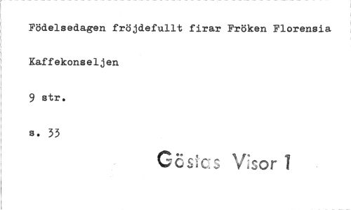 //// Födelsedagen fröjdefullt firar Fröken Florensia Kaffekonseljen //// 9 str. //// s. 33 //// Cb.sic3 Visor 1 ////