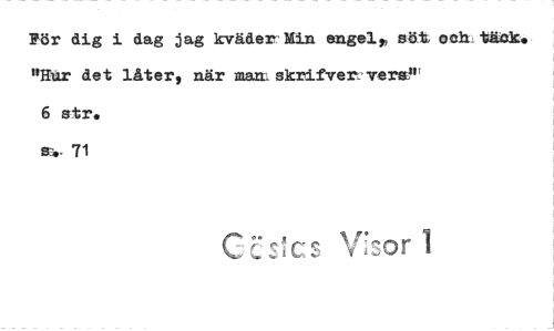 //// För dig i dag jag kväder Min angel?, söt och Wik. "Hur det låter, när man_skrifver:versYr //// 6 str. //// 1W4 71 //// CE.sles Visor ////